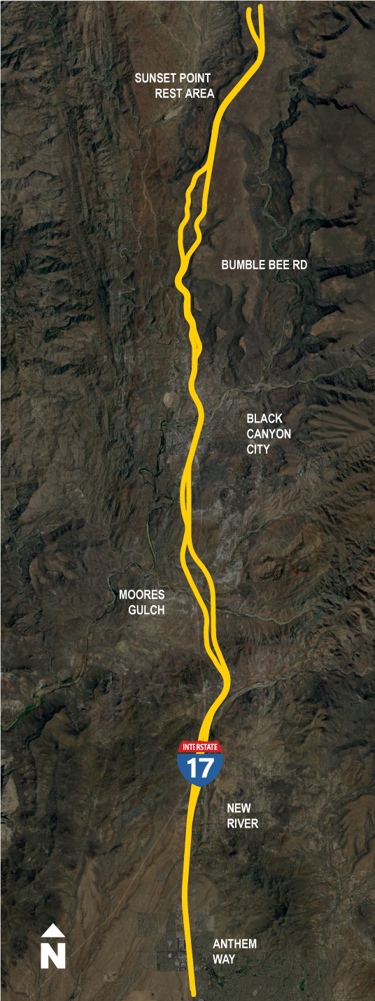 The Interstate 17 (I-17) is the only direct route connecting the Phoenix area with northern Arizona and the mountainous, federal forest land that flanks the highway offers no reasonable alternate routes. The Arizona Department of Transportation (ADOT) is planning to implement improvements to the I-17 corridor that are necessary to increase capacity and safety.